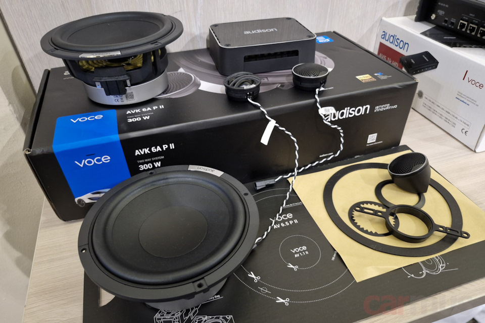 Первая важная новость – подготовка к производству новой акустики Audison Voce II, т. е. второго поколения. Как отмечалось, разработана с нуля, в ней нет почти ничего от прежней линейки, а многие технологии перекочевали из Thesis.Кроме динамиков привычных калибров – 6,5 дюймов, 3 дюйма и 28 мм для твитеров – в серии будут ещё и 4-дюймовые СЧ с переходниками под посадочные места BMW, Mercedes и т. п. Для тех, стало быть, кому мало серии Prima. Да, ну и сабвуферы, конечно же.