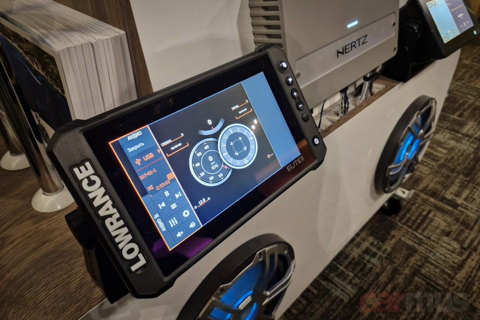 На стенде была представлена и другая акустика – «врезка» Hertz HMX для систем с усилителями, Hertz HEX для работы в системах попроще, в том числе непосредственно от ГУ, ну и сабы Hertz HMS. Всё это – в разных цветах, с разными грилями, с подсветкой или без оной…. Короче, выбор есть.